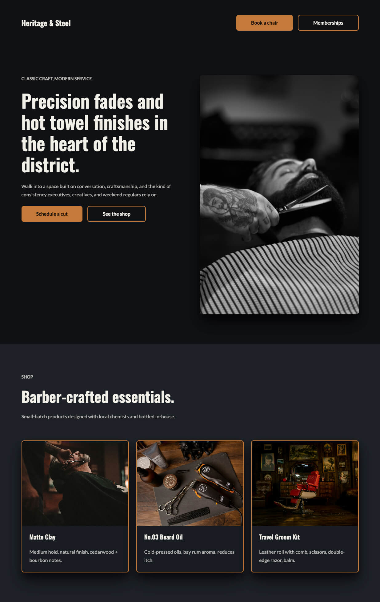 Most barbershops lose customers because people cannot quickly find their services, prices, or booking options online. This barber website builder alternative gives you a ready-made site you can customize before you pay. Free to build, pay to download.