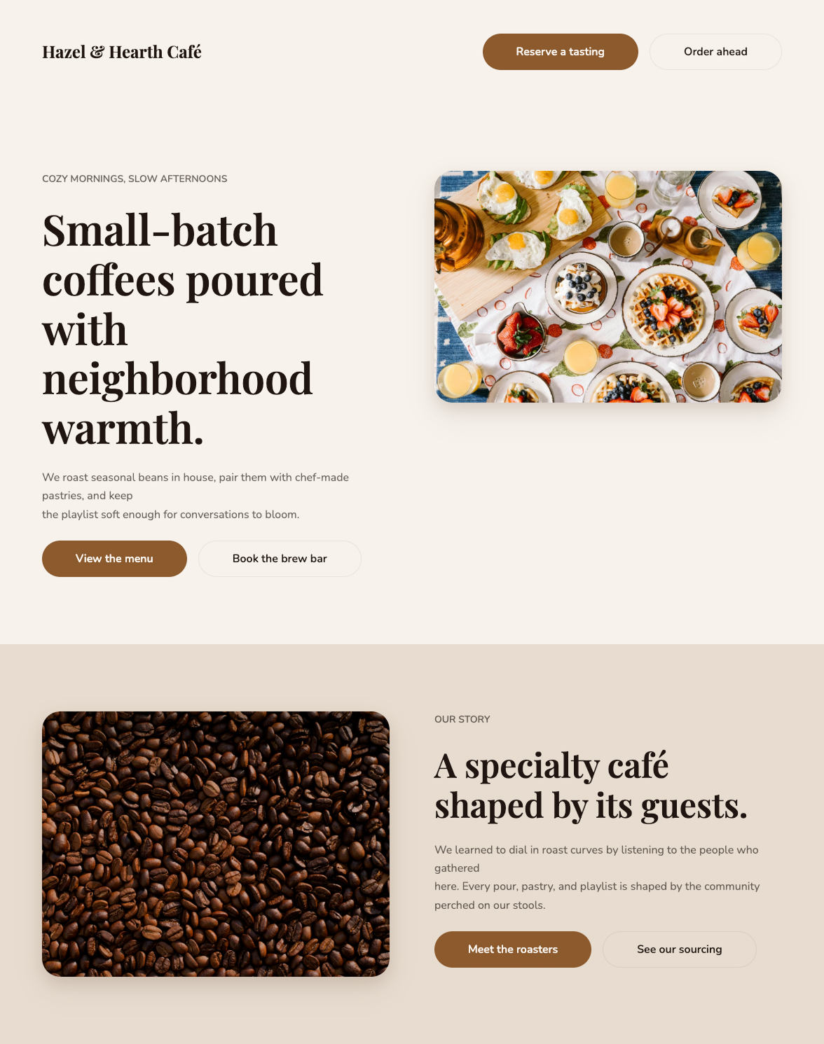 Edit everything — swap copy, images, pricing, and sections until it feels like your café.