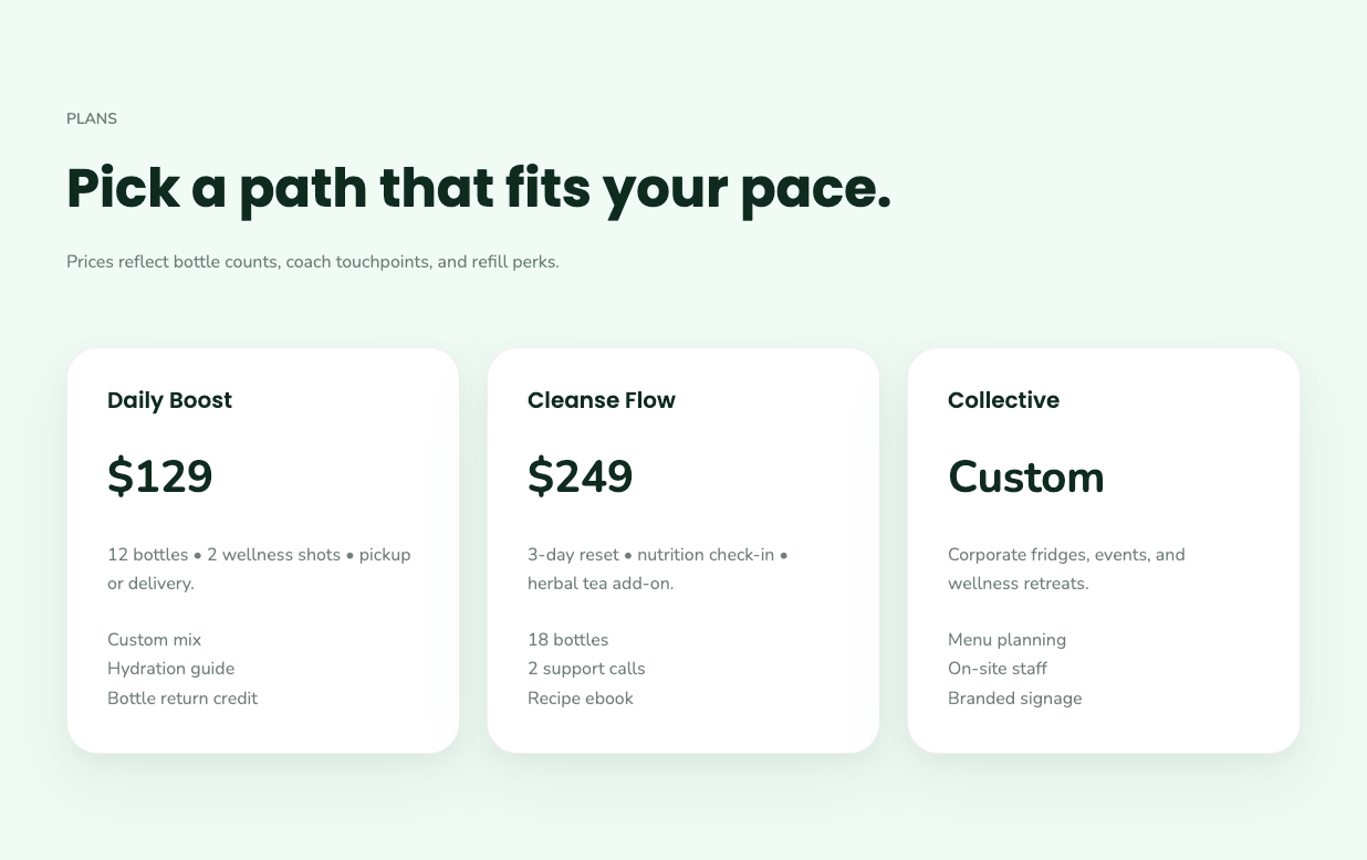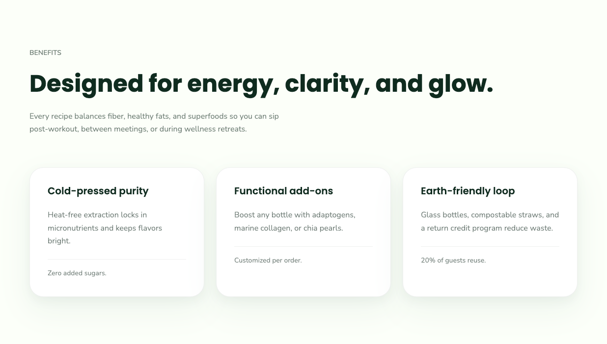 People usually want a quick answer: what do you serve, where are you, and when are you open? A simple juice bar website can also show delivery options, cleanse bundles, and a few good photos before someone decides to visit.
